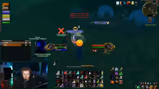 10:48:21Im Fokus der Anfangsphase steht das Management der Quest-Logs und die Kommunikation im Team. Der Streamer weist Dennis an, alle Quests vorzubereiten, um Dungeons effizient zu meistern. Es werden technische Probleme mit den Addons erwähnt, die jedoch schnell behoben werden. Die Gruppe konzentriert sich darauf, den Boss Morgant zu besiegen, um Loot zu farmen, während der Streamer die Raids effizient koordiniert und die队员们 auffordert, bestimmte Aktionen zu timen.