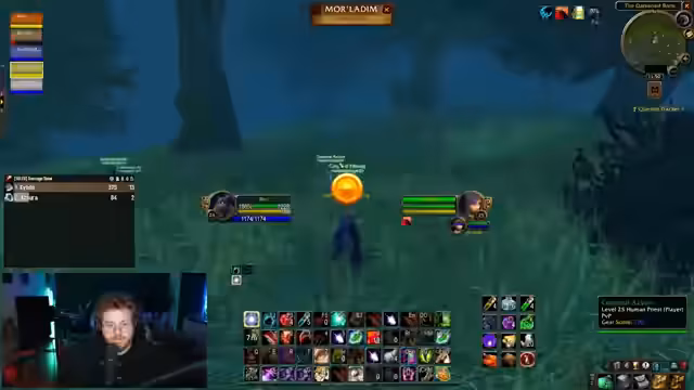 09:24:10Der Streamer widmet sich dem Gameplay in World of Warcraft: Season of Discovery. Er erledigt Quests und kämpft gegen Mobs, erwähnt das Erkennen von Hyperspawns und stellt fest, dass das Gebiet ohne Konkurrenz ist, was den Prozess angenehmer macht. Ein zentrales Thema ist PvP gegen gegnerische Spieler, wobei er mehrmals in Kämpfe verwickelt wird, Gegner besiegt und deren Leistung kritisiert, insbesondere als diese es nicht schaffen, ihn als Schurken zu töten.