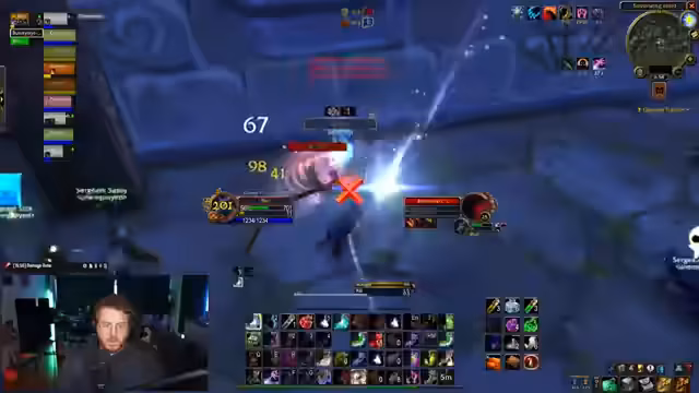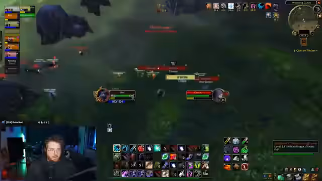 03:12:15Der Kampf verlagert sich auf die gegnerischen Pets, insbesondere auf Schlangen und einen Hexenmeister. Es kommt zu einem ständigen Zielwechsel, um die Bedrohungen effizient zu eliminieren. Der Streamer gibt präzise Anweisungen, um Pets zu fokussieren und Dispel-Effekte zu nutzen. Die gegnerische Gruppe ist hier organisiert, was zu einem dynamischen und knappen Kampf führt.