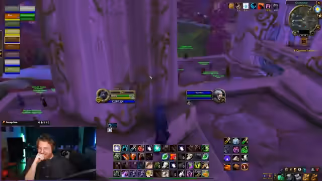 00:30:03Der Streamer wechselt mehrmals die Rolle und den Fokus. Zuerst wird ein Warlock für AOE-Farming geskillt und versucht, dann auf einen Priester umzusteigen. Wegen des zu späten Erhalts der Holy Nova wird jedoch wieder auf Warlock gewechselt. Die Gruppe bleibt dabei flexibel und versucht, ihre Stärken wie hohen Schaden und AoE-Effekte zu nutzen.