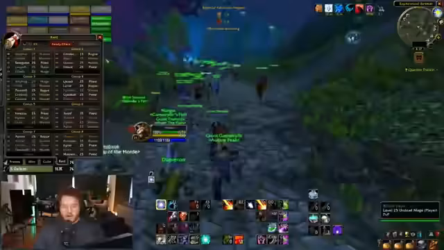 05:07:17Das PvP-Wochenende beginnt mit der Bildung einer Gruppe für Warsong Gulch. Der Streamer wartet auf Mitspieler wie Amy und bereitet sich auf das Schlachtfeld vor. Es gibt technische Diskussionen über die Blizzard-UI, die das Einladen von Spielern in die Gruppe erschwert. Die Gruppe ist bereit zum Start, sobald alle Spieler angemeldet sind. Es besteht die Absicht, in einer organisierten Premade-Gruppe gegen andere Teams anzutreten.