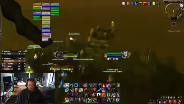 03:37:23Es wird über die Anzahl der WoW-Accounts diskutiert und ob man sich einen Dealparler erstellen sollte. Der Streamer fragt, ob die Leute noch rangeportet werden sollen. Es wird festgestellt, dass beim Lockout-Skip niemand anwesend war. Zuri wird aufgefordert, die Gruppe mit Mark of the Wild zu buffen, da er eine epische Waffe erhalten hat. Es wird festgestellt, dass ein Heal-Druide vorhanden ist. Der Streamer wollte helfen zu porten, hat aber versehentlich auf ein Portal geklickt. Die Gruppe soll auf der Treppe porten, obwohl dort das Problem besteht, dass plötzlich ein Raid rauskommen könnte. Marlon erhält wieder ein Item. Es wird überlegt, ob der Ring oder das Relikt vom Druiden am Ende gelockt werden soll. Ein neuer Spieler namens Merlin Mongo joint dem Discord. Es wird überlegt, ob der Mage ausgetauscht werden soll. Es wird festgestellt, dass ein Hunter ein Melee-Hunter ist, obwohl ein Range-Hunter gesucht wurde. Ein Priester ist offline gegangen, was als schlechtes Zeichen gewertet wird. Es wird vermutet, dass der Dota-Match wieder online kommt. Der Streamer ist am Ende seiner Kräfte und kann nicht mehr. Es wird festgestellt, dass der Klass eine halbe Stunde lang seinen Monitor angeguckt hat, ohne zu merken, dass sich das Spiel aufgehangen hat. Die Gruppe sucht weiterhin einen Heiler und überlegt, eine eigene Gilde aufzumachen.