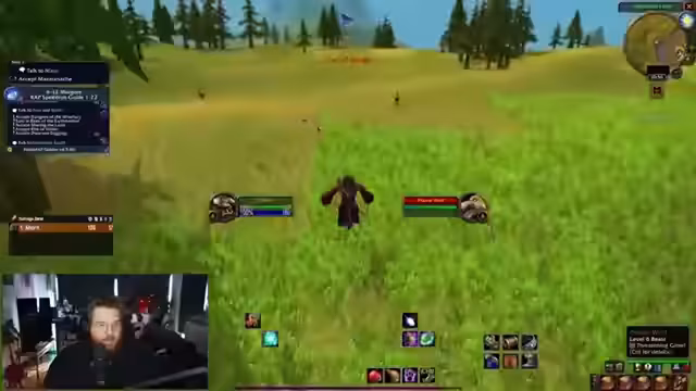 01:40:39Es wird die Schwierigkeit hervorgehoben, eine Gruppe ohne Heiler zu finden, und vom Solo-PvP abgeraten, da es als Glücksspiel betrachtet wird. Der Streamer sucht nach einer Quest für eine Rune und hat Schwierigkeiten, sich in WoW zurechtzufinden. Es wird die Notwendigkeit eines Tanks und zweier DPSler für BSF betont, idealerweise Mages. Ein Mitspieler gibt an, farbenblind zu sein. Der Streamer beklagt das Fehlen von Priestern im Spiel und äußert seinen Frust darüber, keinen Ruf erhalten zu haben. Es wird die Frage aufgeworfen, warum Hexenmeister beim Laufen nicht saugen können, was als OP-Rune bezeichnet wird. Der Streamer reflektiert darüber, warum er sich das Spiel antut, und scherzt über fehlende Freunde. Er gibt zu, passiv-aggressiv zu sein, und verspricht, sich zu bessern. Für eine Quest muss er kurz alleine in BSF, bittet die Gruppe um Geduld und hofft auf einen schnellen Abschluss des PvP-Events.
