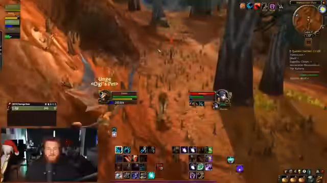 23:07:13Es werden Gegenstände gecraftet und es wird festgestellt, dass nur noch Schilde fehlen. Die kleinen Splasher werden erledigt und es müssen noch drei Bosse besiegt werden, um die Christbaumkugel-Quest abzuschließen. Es wird über den Wert des Ring der Donnerbraue diskutiert, der vermutlich über 50 Gold wert ist. Der Streamer interagiert mit Blutfuchs und fragt nach dessen Pimmel. Es wird der Song Be Strong von Nightcap gelobt. Es wird Hilfe bei der Backstepper-Quest benötigt. Es wird festgestellt, dass die Bosse für die Quest benötigt werden. Es wird nachgefragt, ob die Bosse schon erledigt wurden. Es wird über eine kranke Brust mit 6 Agi, 2 Stärke und 3 Starm gesprochen. Der Streamer bittet um Mark of the Wild und einen Kuss. Es wird überlegt, welche Rune für die aktuelle Area am besten geeignet ist und sich für Mangle entschieden. Es wird über den Weltrekord im Warsong berichtet.