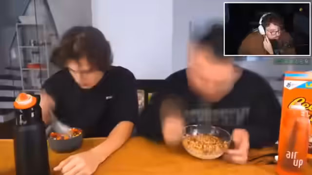 00:42:24Der Streamer schildert den weiteren Verlauf der Challenge, bei der die Teilnehmer nach und nach verschiedene Cereal-Sorten und Schokolade konsumieren. Nachdem bereits mehrere Schüsseln gegessen wurden, kommt es zu körperlichen Reaktionen wie Übelkeit und einem Toilettenbesuch. Die Herausforderung wird als deutlich anstrengender und weniger genussvoll dargestellt als ursprünglich angenommen. Auch der Gaming-Joker, eine Ladung Cornflakes, wird eingesetzt, um den Kalorienbedarf zu erreichen.