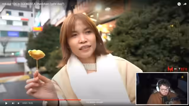 01:02:56Nach der Challenge wechselt der Stream zum Format "Pocket Hazel", in dem eine Person versucht, einen Tag in Seoul, Südkorea, mit nur 10 Euro zu verbringen und zu erleben. Die Herausforderung beginnt mit dem Kauf von günstigem Frühstück an einem Convenience Store. Es wird gezeigt, wie man mit dem geringen Budget viele kostenlose Aktivitäten in traditionellen Vierteln nutzen kann. Der Streamer ist beeindruckt von den kulturellen Erlebnissen wie dem Hanok Village.
