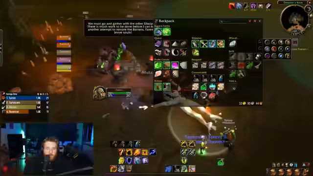 02:10:55Der Streamer startet einen Run im Dungeon Ragefire Chasm und ist erleichtert, dass alles geklappt hat. Nach dem Run spricht er über die Bedeutung von lootenden Mobs und erwähnt spezielle Items wie die Memory of a dark purpose, die Priester-spezifisch sind. Es werden Ratschläge gegeben, wie diese Items benutzt werden können. Während des Runs wird kritischer Schaden durch den Boss Lord Agezo verursacht und der Tank gerät in Schwierigkeiten. Der Streamer kann sich aber erfolgreich zurückholen und dropt den Boss.