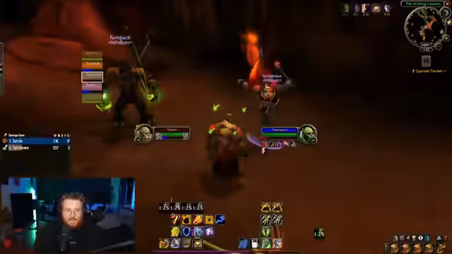 02:22:20Die Streamer beginnen damit, eine Gruppe für die Höhlen des Wehklagens (Wailing Caverns) zu finden, nachdem sie feststellen, dass ihre aktuelle Gruppe nur aus zwei Spielern besteht. Nach einiger Wartezeit und Abstimmung mit der Gilde formiert sich eine funktionierende Gruppe. Der Streamer stellt sicher, dass alle Buffs vorhanden sind und einen Heiler, bevor es in den Dungeon geht. Sie planen, sich erst auf den ersten Boss zu konzentrieren, da das Gesamtniveau der Gruppe zu niedrig ist, um den gesamten Dungeon auf einmal zu bewältigen.