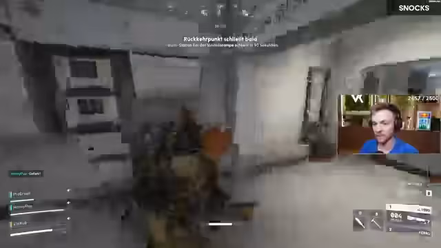 01:06:46Die Gruppe stirbt am Ende der Runde, nachdem sie mit Rauchgranaten versucht hat, sich zu retten. Vor dem Start der nächsten Runde kommt es zu technischen Problemen, da das Spiel nicht korrekt startet. Die Streamer müssen den Server-Wechsel erneut versuchen. Kurz danach werden Gegner gesichtet, die den Wiedereinstieg in das Spiel kontrollieren und darum gekämpft wird, den Spawn sicher zu verlassen.