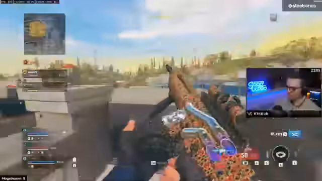 05:21:49Während des Spiels treten technische und strategische Herausforderungen auf. Der Streamer muss sein Team über fehlende Ressourcen wie Rauchgranaten informieren und alternative Pläne schmieden. Die Kämpfe sind heftig, oft mit schnellen Eliminierungen. Spieler werden von verschiedenen Seiten beschossen, was schnelle Entscheidungen erfordert. Es kommt auch vor, dass manche Gegner als Cheater verdächtigt werden, was die Moral und den Spielspaß beeinflusst.