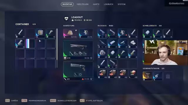 04:17:20Die Streamer konzentrieren sich darauf, so viel wie möglich zu looten. In speziellen 'Hurrikan'-Gebieten findet man anscheinend besonders gute Beute, wie Waffenaufsätze und -Pläne. Es werden Waffen wie die Tempest, die Bobcat und die Rattler sowie generell viele Kisten gelootet. Das Ziel ist, das eigene Lager zu füllen, indem man so viele Waffenteile wie möglich sammelt und bei Bedarf recycelt.