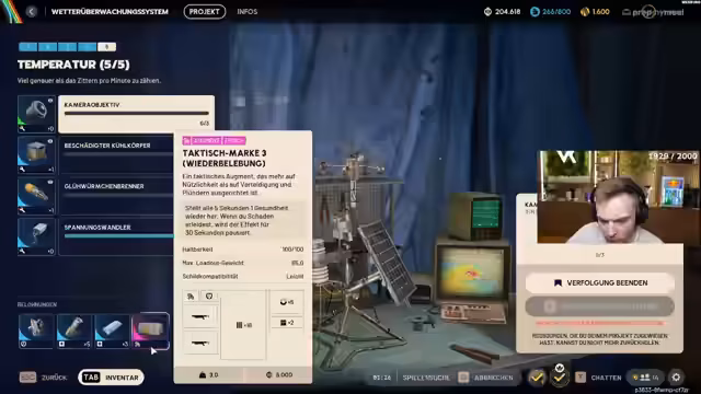 05:34:28Es findet eine intensive Diskussion über die Wirksamkeit verschiedener Augments statt. Der Streamer bewertet ein spezielles Augment, das alle fünf Sekunden die Gesundheit wiederherstellt, als 'schlecht' und 'verrückt', da es keinen Grund gebe, es zu spielen. Auch über die Funktion des Defibrillators und des Sofortschilds wird gesprochen. Er erkundigt sich nach der praktischen Anwendung und Tauschbarkeit dieser Ausrüstung im PvE-Modus, was zeigt, dass er ständig seine Strategie optimiert.