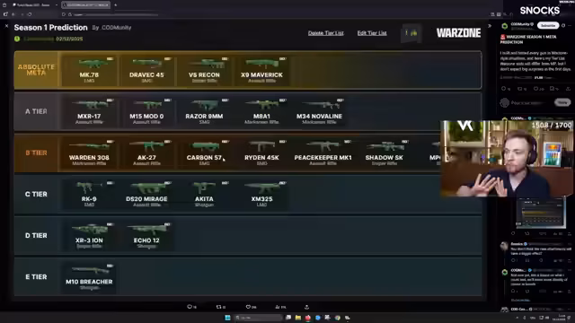 00:04:29Die Zuschauer werden auf die technischen Herausforderungen des Updates hingewiesen, insbesondere die riesige Downloadgröße und die Möglichkeit von Serverproblemen ab 18 Uhr. Der Streamer teilt mit, dass auf Steam keine Preload-Funktion existiert und empfiehlt, das Spiel auf Battle.net zu laden, um den Download gezielt auf Warzone zu beschränken und Speicherplatz zu sparen. Er zeigt eine Grafik von Cotton Unity, die potenzielle Meta-Waffen für Season 1 anzeigt, und äußert seine Absicht, verschiedene Waffen wie die Travic und die MXR zu testen, um am nächsten Tag ein Meta-Video zu erstellen. Er warnt jedoch, dass die Meta im Multiplayer nicht zwangsläufig auf Warzone übertragbar ist.