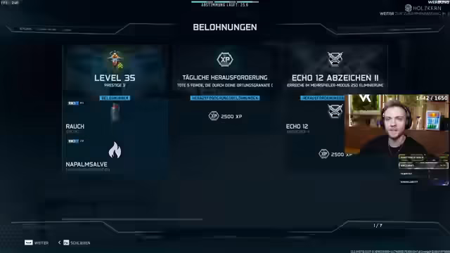 01:40:34Der Streamer kämpft mit den Herausforderungen zum Freischalten von Waffen-Tarnungen, insbesondere mit der Aufgabe, Kills nach dem Waffenwechsel zu erzielen. Er beschreibt diese Aufgabe als 'Kacke' und 'richtig Kacke', da sie sich als schwierig und nervig erweist. Auch andere Aufgaben wie 'Paketenwerfer Double-Kills' bereiten ihm Sorgen. Die Diskussion im Chat dreht sich um die Effizienz verschiedener Spielmodi für das Grinden von Tarnungen, wobei 'Stellung' und 'Abschluss bestätigt' als gute Optionen genannt werden. Der Streamer äußert seine Frustration über die Schwierigkeit der Aufgaben und die Zeit, die dafür benötigt wird, insbesondere wenn man sie auf jeder Waffe machen müsste. Diese Abschnitte verdeutlichen den Grind-Aspekt von Call of Duty und die damit verbundenen Herausforderungen und Emotionen.