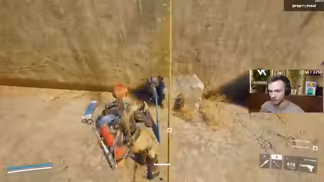 00:57:52Nach vorherigen Fehlschlägen wird eine neue Runde vorbereitet. Der Streamer passt den Equipment-Loadout an und sammelt die notwendigen Ressourcen (mobile Deckungen, Seilbahnen, Seile). Der Fokus liegt darauf, die Fehler aus den vorherigen Versuchen zu beheben und die Konstruktion stabiler zu gestalten. Es wird die Strategie besprochen, die mobile Deckung an einem Felddepot zu errichten, um sofort nach der Installation Loot zu generieren und sich gegen Angreifer abzusichern. Die Stimmung ist motiviert, die Trolling-Aktion vollends umzusetzen.