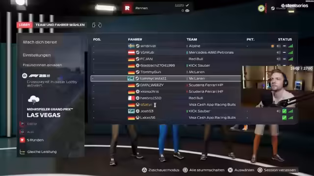 02:30:20Der Streamer informiert über den Aufbau der Formel 1-Lobby, wobei er betont, dass nur Spieler aus Deutschland, Österreich oder der Schweiz teilnehmen dürfen, die die entsprechende Flagge in ihrem Profil setzen müssen. Andere Spieler werden gekickt, um nur echte Community-Mitglieder zuzulassen. Er äußert auch seine Freude an der社区 und plant, Rennen in verschiedenen Ländern wie Monaco, Kanada und Belgien zu fahren.