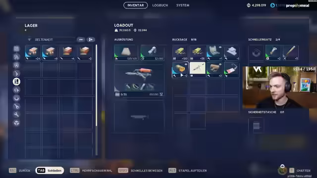 01:19:09Das neue Event ist extrem bauplanüberladen – selbst ohne Teilnahme finden Spieler fast jede Runde mehrere Pläne, bis zu fünf pro Runde bei Wind-Event. Dies führt zu massivem Inventar-Overload, sodass Baupläne und Waffen konstant verkauft oder recycelt werden müssen. Besonders problematisch sind die vielen Aufsätze, die nach dem Craften von Waffen übrig bleiben und den Lagerplatz blockieren.