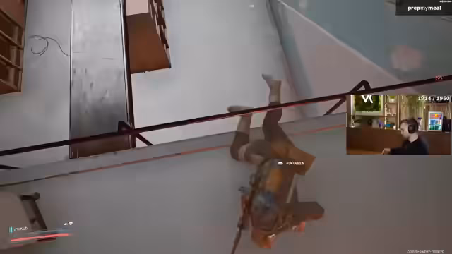 02:38:11Nach einem Sturz wird hochriskanter Loot in oberen Ebenen gesucht. Ein Feind wird mit einer Arschkanone' attackiert – Überleben dank Schutzschilden und schnellem Heal-Item-Wechsel. Diskussion über Team-Bildung in Solos: Ein angeschossener Gegner wird als Türsteher' bezeichnet. Granaten und Schockminen werden für zukünftiges asoziales Trolling geplant.