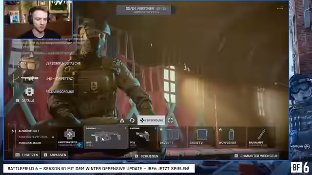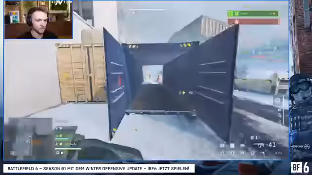 04:14:50Der Streamer spielt Battlefield 6 und kommentiert sein Aim, das er als 'krass' bezeichnet. Er lobt das Audio-Design des Spiels, das einen Award für bestes Audio erhalten hat, und diskutiert mit dem Chat über deren Aktivität in Battlefield. Er erinnert sich an sein erstes Battlefield (Bad Company 2) und erwähnt ein Handy-Battlefield-Spiel, an das er sich vage erinnert. Das Winter-Offensive-Update wird vorgestellt: In neuen Modi wie Gauntlet und Kälte/Sterben kann man nur bei Feuerstellen heilen, was die Strategie verändert. Waffen wie P90, MP7 und M4 werden verglichen, wobei das Visier der P90 besonders gelobt wird. Das Event wird als kleines, aber willkommenes Update beschrieben, da Season 2 noch aussteht.