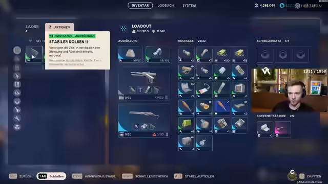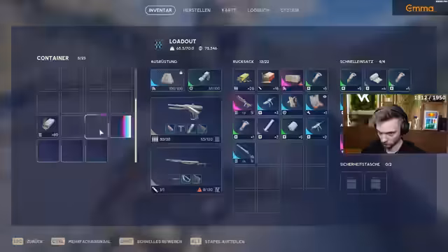 01:00:14Der Streamer entdeckt einen neuen Bauplan für einen „Raiderleuchtfakt mit Fernzündung“, der ein Raidernoziklan auslöst – eine asoziale, aber effektive Taktik zum Baiten. Er plant, diese mit Spitzel-Scannern zu kombinieren, die Hornissen und Wespen spawnen, um Gegner an Exfil-Punkten oder bei Loot-Aktionen zu überwältigen. Während der Runden sammelt er mehrere Scanner, testet die Reichweite und bespricht die Limitierungen (maximal fünf Stück). Ein Versuch, Gegner mit der Falle am Exfil-Punkt zu trollen, misslingt jedoch.
