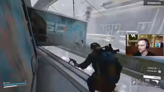 00:09:07Nach einer kurzen Vorstellung des Soundboards für neue Zuschauer startet die erste Runde auf Stellar Montes. Das Soundboard wird verwendet, um Gegner durch abgespielte Schüsse zu baiten, sodass sie denken, dass viele Spieler in der Nähe sind und unnötig pushen. Der Streamer erklärt die Taktik: Soundboard-Schüsse locken Gegner an, während der Spieler selbst verborgen bleibt. In einer Situation funktioniert dies sofort – ein Gegner rennt wegen der Schüsse direkt in den Hinterhalt und wird eliminiert. Der Streamer bezeichnet die Taktik als unglaublich effektiv und toxisch.