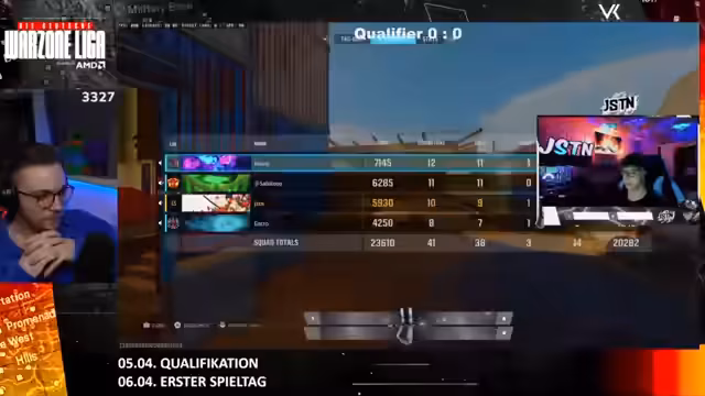 04:57:04Die Qualifikationsrunde für die 7.000€ Deutsche Warzone Liga hat begonnen. Zehn Teams wurden direkt zur Liga eingeladen, darunter bekannte Namen wie Melvin, Lipton, Dickie Stukex und Kayser Splash. Sechs weitere Teams können sich in der heutigen Qualifikation aus einem Feld von 64 Teams durchsetzen. Parij nimmt an der Qualifikation leider nicht teil, da er keine Zeit hat. Der eigentliche Ligabetrieb startiert morgen um 14 Uhr.