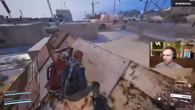 04:38:33Der Streamer erkundet das Gelände des Krankenhauses in Tempest, ist sich jedoch unsicher, ob ein Kampf dort strategisch sinnvoll ist. Er entscheidet sich für einen Vorstoß, während sein Team noch weiter unten positioniert ist. Es werden Gegner gesichtet, die sich auf dem Dach eines nahegelegenen Gebäudes aufhalten. Der Streamer plant, von unten anzugreifen und nutzt dabei den Zip-Line, um sich schnell zu bewegen und den Gegner in den Rücken zu fallen.
