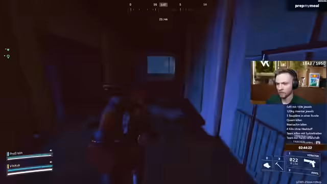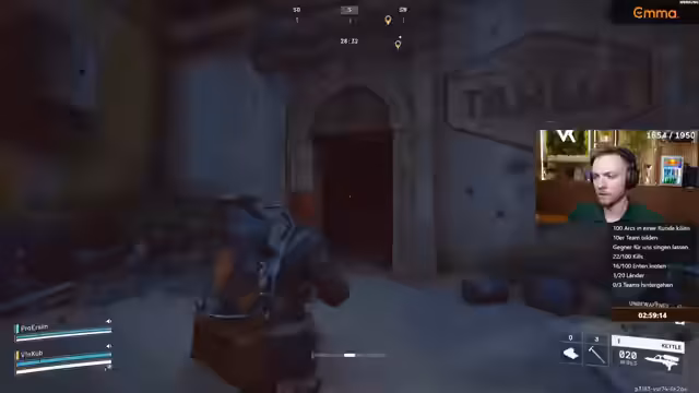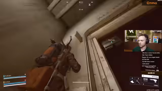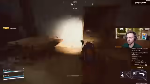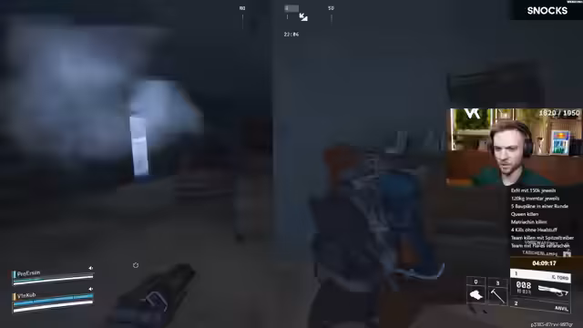 02:54:08In dunklen Gebäuden kommt es zu heftigen Feuergefechten mit anderen Teams, bei denen Rauchgranaten und schlechte Sichtverhältnisse die Orientierung erschweren. Nach verlorenen Kämpfen und weiteren Ressourcenverlusten wechseln sie zur Schneemap, um bessere Loot-Chancen zu nutzen. Die Spieler reflektieren ihre Fehler und passen ihre Challenge-Ziele nach unten an (120k statt 150k).