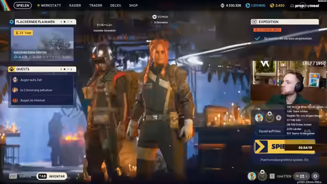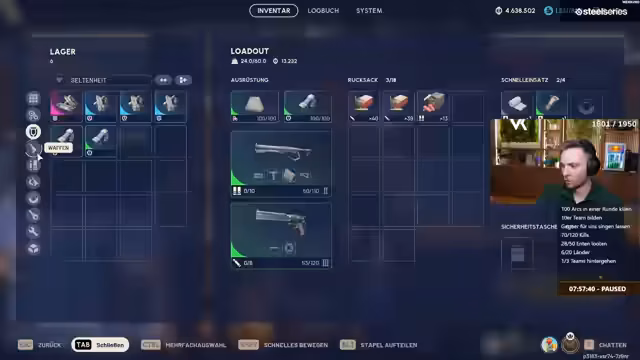 01:47:22Nach einem verlorenen Kampf und vollständigem Inventarverlust werden Notfallmaßnahmen besprochen: Reporten von Gegnern, erneutes Ausrüsten mit Notfallwaffen (Anvil) und Drängen auf Chat-Unterstützung. Der Plan sieht vor, mit Streamsnipen-Hilfe und gezielten Ozeanien-Servern einen neuen Anlauf zu wagen, inklusive Atomuhr-Koordination für gemeinsames Queuen.
