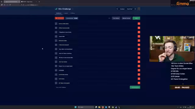 00:04:22Die 16-Stunden-Challenge umfasst 15 schwierige Aufgaben wie Exfil mit 150.000 Inventarwert pro Spieler, 120kg Inventargewicht, fünf Baupläne in einer Runde, Besiegen einer Queen und Matriarchin, vier Kills ohne Heilen, Teamkill mit Spitzeltreibern, 100 Arc-Kills in einer Runde, Bildung eines 10er-Teams und das Hintergehen von drei Teams. Besonders herausfordernd sind die 100 gemeinsamen Kills und 100 Enten-Loots, da diese strategische Planung erfordern.