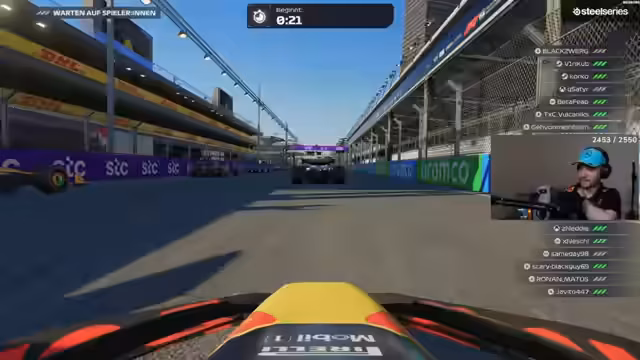 02:56:46Die Streamer spielen eine Runde auf der Baku-Strecke, die sie als eine "Vollkatastrophe" und "Scheißstrecke" bezeichnen. Ein Spieler erlebt Probleme mit seinem Frontflügel und muss langsam fahren, um den Schaden nicht zu verschlimmern. Es kommt zu Diskussionen über das Fahrverhalten, das schnelle Überholen auf Geraden und die Schwierigkeit, andere Fahrer ohne DRS zu überholen, was Frustration auslöst.