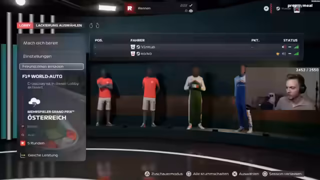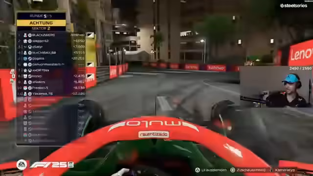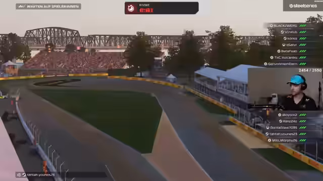 04:04:02Ein Streamer kämpft mit den technischen Schwierigkeiten seines Lenkrads, das nicht mittig sitzt und das Fahren erschwert. Er beschreibt, wie er bei der ersten Kurve auf einer ihm unbekannten Strecke in die Wand kracht. Sein Rennen verläuft chaotisch, er erhält Zeitstrafen und beschwert sich über die "FIA" im Spiel, die seiner Meinung nach unfair straft. Obwohl er einige Fehler macht, sieht er sein Rennen als "stark" an.