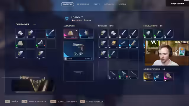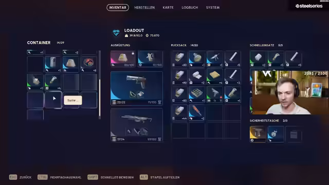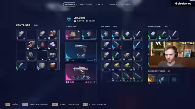 05:12:27Der Streamer bereitet sich auf einen Raid vor und sammelt gezielt Materialien, die er für das Craften von Schilden benötigt. Er nimmt speziell recycelbare Legierungen mit, die er für die Herstellung von Schaltkreisen nutzen kann, um so die Produktion mittlerer Schilde zu beschleunigen, von denen er häufig einen Mangel hat. Nachdem seine Vorbereitungen abgeschlossen sind, bricht er mit dem Ziel 'Ravers Nightmare' auf, um eine neue Runde zu starten.