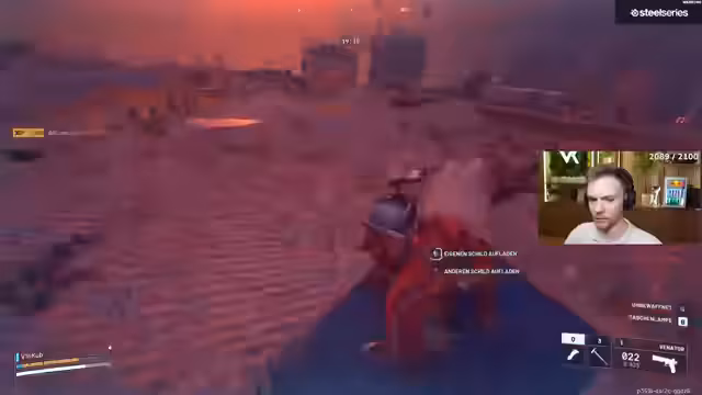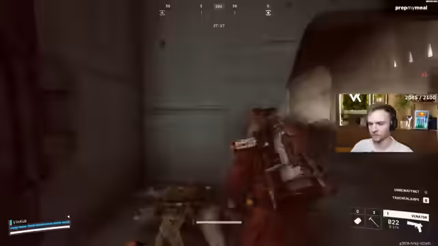 04:54:50Nach einer kurzen Pause, in der er über einen neuen Spot mit Barrikaden nachdenkt, wird der Streamer von einem Gegner überfallen, der hinter ihm auftaucht, obwohl er keine Schritte gehört hat. Er ist über diese Inkonsequenz im Spiel frustriert und beschwert sich über das mangelnde Hörvermögen des Charakters. Er beginnt eine neue Runde, ist aber unzufrieden, da er wieder in eine PvP-Lobby mit Gegnern, die kostenloses Equipment nutzen muss.
