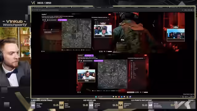 03:46:13Um 21 Uhr beginnt offiziell die Watch-Party für das Finale der World Series of Warzone mit 1.000.000 Dollar Preisgeld. Der Streamer kommentiert das Geschehen live, analysiert die Teams wie die Falcons, Aidens Team und Dongy, und beobachtet den Kampf um die Krone in-game. Er interagiert mit dem Chat und wünsht den Spielern wie Ryan viel Erfolg während des gesamten Finales.