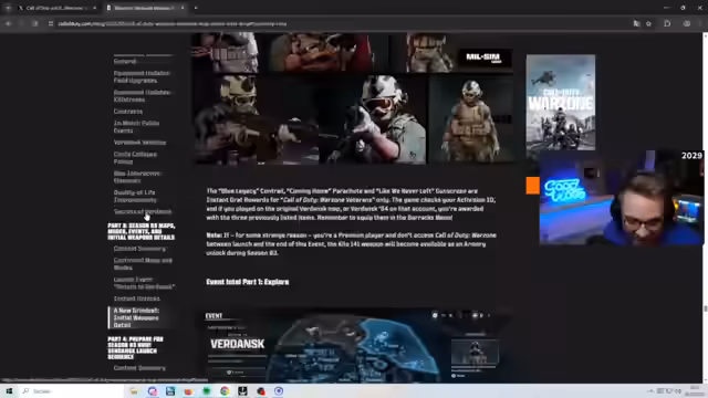 06:00:18Der Streamer präsentiert die Season 3 Roadmap für Call of Duty, die neue Modi wie Battle Royale Casual, Plunder und High Trip Resurgence sowie Qualitätsverbesserungen wie detaillierte Todesanzeigen und die Möglichkeit, Waffen-Modifikationen zu inspizieren, ankündigt. Er äußerte seine Vorfreude auf die Rückkehr von Verdansk und verbesserte Spielmechaniken wie Ziplines und den klassischen Ladebildschirm während der Diskussion über die bevorstehenden Inhalte.