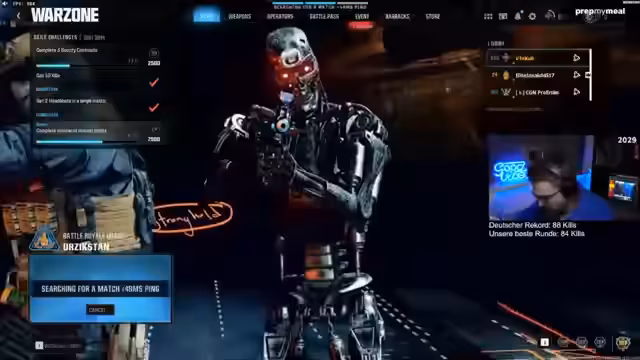 00:03:06Es wird angekündigt, dass das Ziel ist, den deutschen Rekord von 88 Kills im Duo vs. Quads Modus zu brechen. Der Streamer und sein Partner hatten vorgestern 81 und gestern 84 Kills erzielt, was bedeutet, dass heute mindestens 89 Kills benötigt werden. Es wird auch die Vorfreude auf die Rückkehr von Verdansk betont und wie wichtig es ist, jetzt Battle Royale zu spielen, um für den Release von Verdansk vorbereitet zu sein. Der erste Tag, an dem ausschließlich Battle Royale gespielt wurde, war schwierig, da der Streamer eingerostet war. Es wird erwähnt, dass Doppel-XP bald verfügbar sein wird, was das Leveln erleichtern wird. Trotzdem wird betont, dass die mentale Gesundheit Vorrang hat und ein zu intensives Grinden vermieden werden soll, um nicht schon vor Verdansk 'vermöbelt' zu sein. Es wird eine Custom Lobby gestartet, um sich mit einem Team einzuspielen und die Kommunikation zu verbessern, da jetzt viele wegen Verdansk spielen wollen.