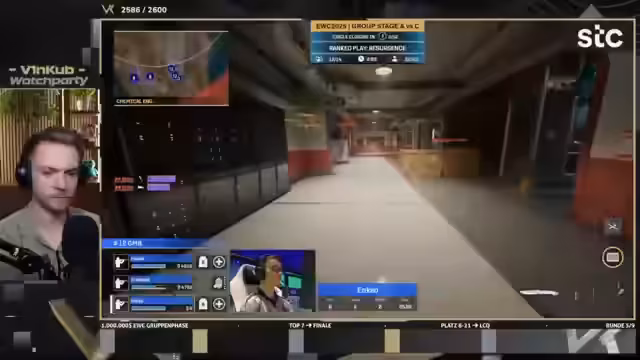05:05:19Der Fokus des Streams lag auf dem E-Sports World Cup, bei dem derzeit die Gruppenphase stattfindet. Es wurde erläutert, dass jedes Team insgesamt zwölf Mal gegen andere Teams spielen muss. Der aktuelle Stand von Team Deki, Leviathan genannt, wurde mit Platz 16 von 21 Teams und 51 Punkten angegeben. Damit ist das Team noch weit von den Top 7 Teams entfernt, die direkt ins Finale einziehen, und benötigt eine deutliche Leistungssteigerung am zweiten Tag.