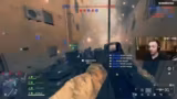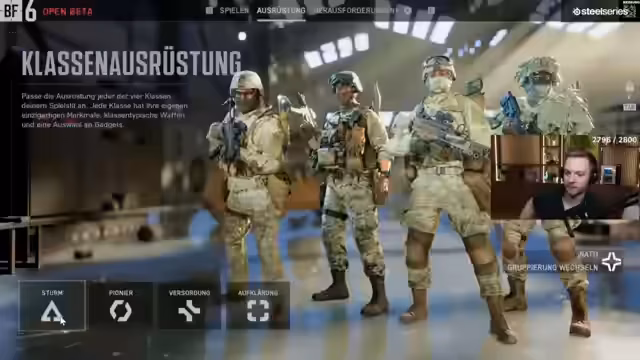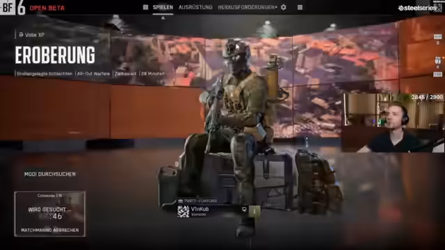 01:02:43Nach der Überwindung der Warteschlange startet die erste Runde Eroberung. Der Streamer wählt die Medic-Klasse mit M4, Pistole und Messer. Das Gameplay fühlt sich für einen Maus-und-Tastatur-Spieler als 10 von 10 an und gilt als besser als auf Controller. Die Bewegungsmöglichkeiten im Spiel wie das Durchbrechen von Fenstern werden genutzt. Das Zerstörungssystem beeindruckt.
