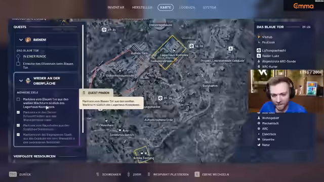 00:05:41Der Streamer kündigt an, wieder in das Spiel Arc Raiders einzusteigen. Er ist auf der Suche nach einem Mitspieler namens Ersin, um gemeinsame Quests zu erledigen. Hauptziele sind das Sammeln bestimmter Materialien wie Glühbirnen, Akkus und Shredder-Gyroskope. Er teilt einen Geheimtipp mit einem Spot, an dem garantiert Glühbirnen zu finden sind.