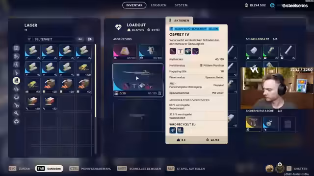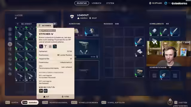07:56:17Zuerst geht es um die Waffen-Drops und die anstehende 10-Millionen-Marke im Spiel. Der Streamer testet verschiedene Waffen wie die Bettina und Jupiter und berichtet über Erfolge und Herausforderungen im Kampf. Es wird über den Munitionsverbrauch gesprochen und festgestellt, dass Adrenalinspritzen extrem teuer sind, was ein großes Problem darstellt. Der Fokus liegt auf der Leistung der Waffen, wobei Preis und Leistung in der anstehenden TIERLISTE eine untergeordnete Rolle spielen.