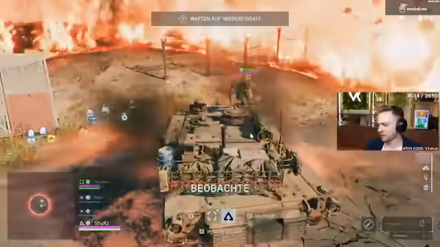 02:20:08Die Spieler befinden sich in einem intensiven Gefecht, bei dem die Gegner links rotieren und die Zone im Auge behalten werden muss. Ein Spieler wird von einem Scharfschützen getroffen, während andere sich um Ausrüstung kümmern. Die Notwendigkeit von AR- und SMG-Waffen wird betont, während ein feindlicher Panzer in der Nähe gesichtet wird. Die Gruppe versucht, strategisch vorzugehen, indem sie sich in Häusern verschanzt und eine Supply Station ansteuert, um sich mit Platten zu versorgen. Die Kommunikation ist entscheidend, um feindliche Positionen zu identifizieren und sich gegenseitig zu unterstützen, besonders als ein Spieler von einem Panzer angegriffen wird und eine Drohne zur Aufklärung eingesetzt werden soll.
