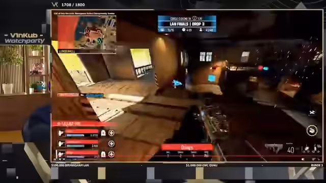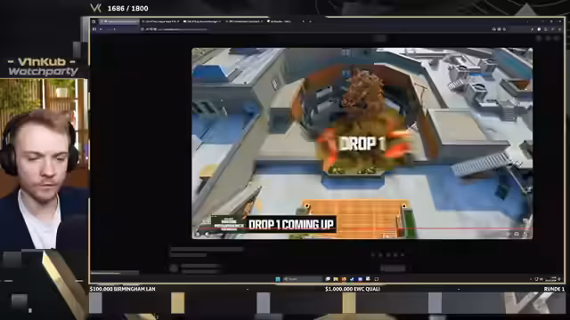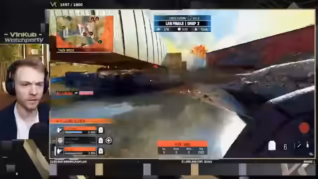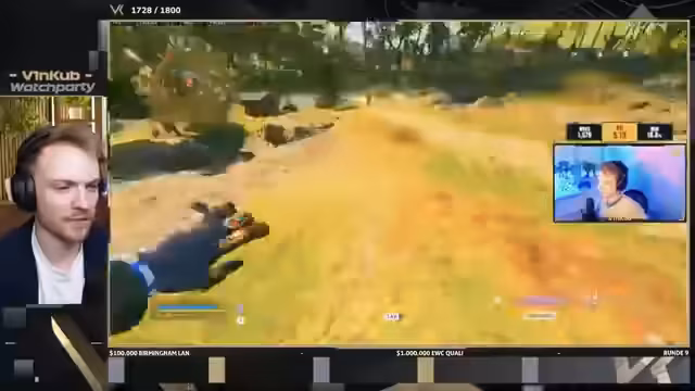 01:15:45Das Turnier startet und die ersten Landungen erfolgen. Ein Team wird bereits in den ersten zwei Minuten ausgelöscht, was zu schlechter Stimmung führen würde. Gleichzeitig treten massive technische Probleme auf. Die Server werden neugestartet, was zu langen Wartezeiten führt, und die Bildqualität der Kameras wird als miserabel beschrieben. Der Streamer äußert seine Frustration über die langen Pausen zwischen den Runden, die den Flow stören und die Watchparty anstrengend machen.