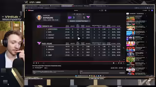 06:05:45Nach dem Warzone-Turnier richtet sich der Fokus auf ein CDL-Major-Turnier. Hier steht das Loser-Bracket-Finale zwischen Koi und FaZe an. Der Streamer analysiert das Spiel und ist der Meinung, dass der Sieger dieses Duells wahrscheinlich im Grand Final gegen Optik unterliegen wird, da Optik bereits dominant gezeigt hat. Er hebt hervor, wie positiv es ist, dass während eines offiziellen CDL-Events auch ein Warzone-Turnier stattfindet, da dies das Zuschauererlebnis bereichert.