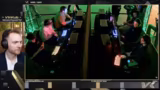 02:01:10Die Live-Party beginnt mit der Betrachtung des Startsetups der Turnier-Spieler. Der Kommentator macht sich über die seltsam geformten Stühle lustig, von denen einige sich unförmig an die Spieler anlehnen. Im Anschluss werden die technischen Voraussetzungen der Streamer angesprochen. Während die Turnier-Spieler Headsets mit einem zusätzlichen Noise-Cancelling-Kopfhörer tragen, wird erklärt, dass dies bei derartigen Turnieren üblich ist, um externe Geräusche zu minimieren. Kameraqualität und Tastaturen der Spieler werden kurz erwähnt und deren Einstellung thematisiert.