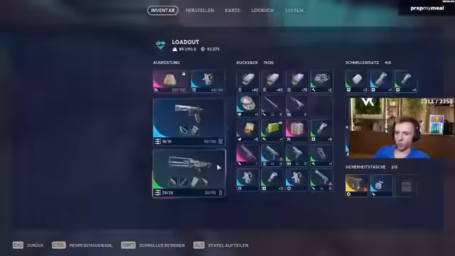 02:08:11Nach einem intensiven PvP-Spiel widmet sich der Streamer seinem Inventar. Er repariert alle seine Waffen, um Platz zu schaffen und zu verhindern, dass sie "grau" und wertlos werden. Er beginnt damit, seine gesammelten Bobcats zu recyceln und stattdessen die besten verfügbaren Aufsätze wie den "Kinetic Converter" auf seine wichtigsten Waffen zu setzen. Es wird ein Trading mit einem Teamkollegen erwähnt, bei dem ein Aufsatz getauscht wird. Das Ziel ist eine effiziente Ausrüstung für zukünftige Matches.