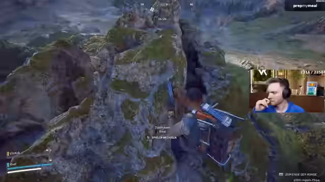 02:43:04Der Streamer und ein Kämpfer sind in einer Burg, wo sie auf andere Spieler treffen. Ein Spieler hat die Queen getötet, und der Streamer diskutiert über die Wahl der Waffe für den Kampf, wobei er die Vorteile einer Hairpin oder einer Shotgun betont. Er scannt die Umgebung, nachdem eine gelbe Markierung erscheint, und vermutet, dass ein Gegner generell weiß, dass etwas in der Nähe ist, aber nicht, dass er selbst oben ist.