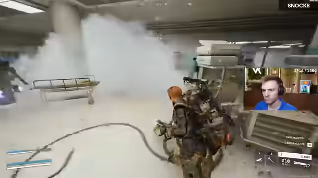 05:33:06Zu Beginn der Runde konzentriert sich der Streamer auf PvP-Kämpfe. Er erkundet das Dach eines Gebäudes, wird von Gegnern angegriffen und verliert schnell viel Leben. Nach einem kurzen Rückzug und der Heilung eines Teamkollegen wird das Vorrücken fortgesetzt. Beim Plündern eines besiegten Gegners stellt er fest, dass dieser kaum Ressourcen wie Akkus bei sich hatte. Trotzdem sammelt das Team umfassend Loot, darunter wertvolle Waffenaufsätze und Munition.