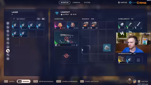 04:35:32Der Streamer zeigt sich frustriert über die derzeitige dunkle Map-Variante, die die Sichtbarkeit drastisch einschränkt und das Spiel unangenehm macht. Er äußert seine Absicht, keine schweren Schilder mehr mitzunehmen, da sie die Bewegungsfreiheit stark einschränken. Stattdessen versucht er, Platz im Inventar zu schaffen, und wechselt zu einem leichten Schild. Gleichzeitig kritisiert er den hohen Preis für das Herstellen von Rauchgranaten, was ihm häufig fehlt.