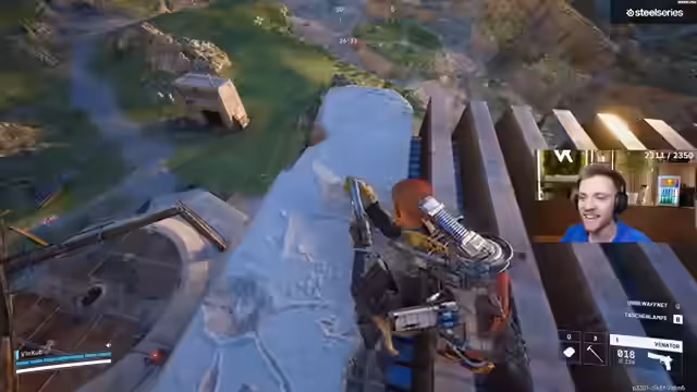 05:18:39Der Streamer äußert seine persönliche Meinung über verschiedene legendäre Waffen, so z.B. dass die Aphelion als 'scheiße' bewertet wird. Er hebt die Vorteile der Map Stella Montes hervor, die sich zum Looten und Kämpfen eignet, solange keine Glitcher im Spiel sind. Anschließend kämpft er sich durch einen neuen Bereich der Map, wird von mehreren Seiten beschossen und ist unsicher über die Herkunft des Feuers.